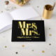 The sophisticated gold foil Mr. and Mrs. wedding guest book showcases a bold typography design, with the Mr. and Mrs. titles elegantly displayed in gold foil. The ampersand symbol is prominently featured, along with a circle containing a gold love heart instead of a traditional period. The backdrop of the guest book is a sleek black colour, adding a touch of elegance to the overall aesthetic. The back is covered with a photo of the couple.