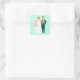 Mr and Mrs Bride and Groom Teal Square Sticker