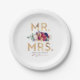 Mr and Mrs Burgundy and Navy Floral Typography Paper Plate