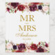 Mr. and Mrs. Burgundy Floral Gold Wedding Wine Label