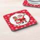 Mr and Mrs Claus, African-American Santa Christmas coasters with red and white snowflakes background.