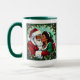 Cute old-fashioned Christmas coffee cup sweet vintage African-American Mr and Mrs Santa Claus. Cute ai art that gives you that nostalgic Christmas vibe.