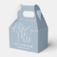 This dusty blue minimalist elegant script wedding favour box can be personalised with your information in chic typography. Designed by Thisisnotme©