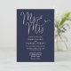 Mr And Mrs Elegant Script Navy Blue Wedding Invitation