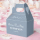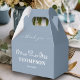 Make a lasting impression with the Mr and Mrs Elegant Simple | Dusty Blue Favour Box. This elegant favour box is a unique way to share a small gift or treat with your wedding guests. The dusty blue colour and personalised text with your family name and wedding date adds a special touch they'll remember.