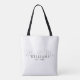 Featuring modern, elegant typography, this chic black-and-white tote bag can be personalised with your name and special date. Designed by Thisisnotme©