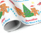 Your special child will love seeing his or her gifts wrapped in this cute personalised wrapping paper. Mr. and Mrs. Gingerbread Man stand beside a colourful holiday tree with a gold star at the top. A red Christmas bird flies overhead. A second star and a blue and white striped candy cane add more decoration. Your custom text is in bright red and blue. The images and text are placed on a snow white background. Colourful and fun for any kid! *Thanks to Real Deal Clip Art for some of the art used in this design.