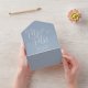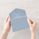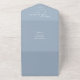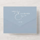 This all-in-one minimalist wedding invitation features elegant typography on a dusty blue background. The invitation includes a perforated RSVP card with your wedding website QR code. Designed by Thisisnotme©