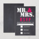 Mr. and Mrs. Modern typography black hot pink chalkboard wedding RSVP reply/response card featuring the Mr. and Mrs. courtesy titles in white, the ampersand in hot pink fuchsia and the period in white with a hot pink heart in it. This modern and contemporary, elegant wedding template design with has a vintage rustic flair to it. It is fun and trendy and is part of a wedding collection or set fully customisable perfect for a winter wedding.