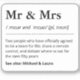 Give your wedding or anniversary gifts a warmer, more personal touch with this customizable Mr. & Mrs. definition sticker. The clean dictionary-style design works beautifully on all kinds of gift-wrapping. You can rewrite the definition however you like — add a sweet note, a funny line, or something meaningful to the couple — and include their names underneath to make it feel extra special.