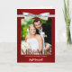 Elegant wedding reception invitation for the newlyweds who eloped or had a small destination wedding. Done in an elegant red print with silver bow and place for the couple's photo and names on the front. Inside announce the specifics of your Just Married union and invite friends and family to join in celebrating your wedding.