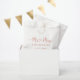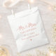 A beautifully romantic wedding favour bag showcasing "Mr and Mrs" in flowing rose gold heart script with a sweet heart flourish accent. The couple's monogram last name, wedding date, and "Thank You for Celebrating with Us" are elegantly displayed below. All text is fully customisable. The soft rose gold tones create a feminine, modern look perfect for reception treats or candy bar favours.