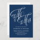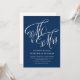 Welcome guests to your event with this customisable wedding invitation. It features rustic calligraphy and simple typography. Personalise this navy blue wedding invitation by adding your wedding details. This script wedding invitation is perfect for any wedding theme or season.