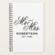 Mr and Mrs spiral wedding planner for couple. Personalised weekly / monthly agenda book. Make your own cover design with custom surname. Fun engagement party gift idea for him or her. Classy typography design with date of marriage. Upload your own image optionally. White or custom colour background. Great for planning wedding, appointments, important dates etc. Perfect for bride and groom getting married, newly weds, husband and wife etc.