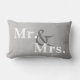Mr and Mrs typography pillow in grey and white for home decor and wedding gifts.