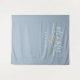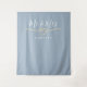 Elegant, modern, minimalist dusty blue Mr and Mrs wedding backdrop with gold rope heart.