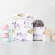 Fancy Mr and Mrs purple text on white with gold wedding rings.