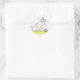 This round sticker shows a watercolor illustration of a Jack Russell Terrier and his ball!