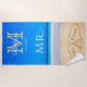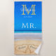 Wedding Hearts in Sand Family Monogram, Brides Mr. Beach Towel.