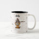 Mr Coffee Gnome Two-Tone Coffee Mug. For the coffee lover, you need this adorable coffee loving handsome gnome. This cutie has coffee beans all over his tall hat and holding a latte cup just about as big as him. This design is on a background of white birch giving it that woodsy coffee feel. Easily personalised with your name or a friends name.