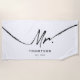 A simple minimalist white background and black script text "Mr" beach towel that can be customised to your name and established date. An ideal gift for newlyweds, bridal showers, wedding gifts. Customise the text and make it your own.