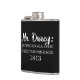The flask itself is fine. It’s a cheap flask, obviously bought in bulk, however am prepared to overlook that. Given that it is a personalized item, I would have liked to have seen gift boxing instead of the generic packaging. Terrible printing, and/or quality. It’s a cheap, tacky vinyl. It is not cut straight and is also applied in a way that it is overhanging the bottom, causing the glue to catch on items and it will eventually roll and tear, damaging the wrap.
