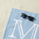 Mr. Dusty Blue Beach Wedding 2 Hearts Sand | His Beach Towel with newlyweds names "Honeymoon vibes", beach towel.