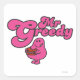 Is it Mr. Greedy's birthday? Because he's enjoying a huge cake! Maybe he's just hungry and cake is all he has to eat. Ask him for a bite and see if he'll share with you.
