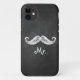 A vintage moustache on an illustrated chalkboard background decorates this case. It is easy to personalise with initials, Mr.,Mr. last name or to delete if preferred. the coordinating Mrs. Lips iPhone case is also available.