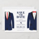 Let everyone know you two have settled on a date for your wedding with this modern save the date card featuring two navy suits. Personalise by adding your names, date and wedding location.