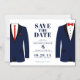 Let everyone know you two have settled on a date for your wedding with this modern save the date card featuring two navy suits. Personalise by adding your names, date and wedding location.