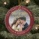 Mr & Mrs 2 Photo Newlyweds 1st Xmas Burgundy Gold Ceramic Ornament