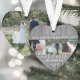 Celebrate a joyful 1st holiday as a married couple with a custom 4 photo collage "Our First Christmas as Mr. & Mrs." heart-shaped acrylic ornament. All text and images on this template are simple to personalise. (IMAGE PLACEMENT TIP: An easy way to centre a photo exactly how you want is to crop it before uploading to the Zazzle website.) The modern farmhouse style design features a rustic grey faux wood border, handwritten style script calligraphy names & year, and four pictures of your choice. This unique wedding keepsake adds a stylish elegant touch to the newlyweds' Xmas home decorations. Example photo on front middle & on back is by Tim Stagge (Source: @tim_stagge on Unsplash).