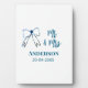 Mr & Mrs add name date wedding favour bow blue gre Plaque
