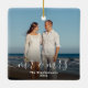 Add your wedding photos on front and back, double 2 sided ornament... Stylish Loose and casual script typography, your names and year or other text. Modern, simple casual elegant script writing. Celebrate your first year as mr and mrs, married with this beautiful keepsake wedding gift for bride and groom ornament. Upload your photo to create a full-bleed holiday Christmas ornament, a wonderful gift idea yourselves as newlyweds, wedding party or other friends and family.