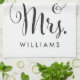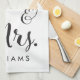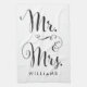 This modern kitchen towel features a script Mr. & Mrs. graphic and can be customised with a name.