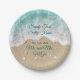 The playful and fun saying, Sandy Toes Salty Kisses... Mr. & Mrs. accent these paper plates on a background of turquoise blue water, beach sand, seashells, starfish and sand dollars, making it a perfect accent for your beach, tropical or destination wedding or rehearsal dinner. These paper plates are further personalised with the wedding date and the happy couple's new last name. If additional items are needed for your wedding just contact us at prettyfancyinvites@gmail.com with your request.