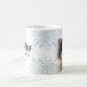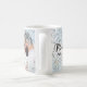 Celebrate the magical and festive holiday season with our custom Mr & Mrs first Christmas mug. Our modern and elegant winter wonderland wedding newlywed holiday design features an elegant blue and silver frosty snowflake and faux silver snow confetti background. "Mr & Mrs." is displayed in black handwriting style typography and newlyweds last name, along with year. The other side features a large photo placeholder image to display your own photo. All illustrations contained in this elegant frosty winter wonderland snowflake newlyweds holiday photo mug are hand-drawn original artwork by Moodthology. You can customise the text size, text colour, font and layout for your own personal design preference