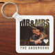 Mr. and Mrs. photo keychain with heart anniversary year and family name text. Great for bridal shower or a wedding anniversary.