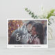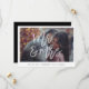 This save the date card features semi-transparent "Mr. & Mrs." text overlaying a photo, with your names and wedding date below. You will likely need to click "click to customise further" to adjust the spacing of the text boxes with your names. If you prefer the location to be on there, simply replace "save the date" with the location instead!