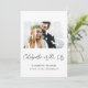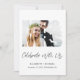 Simple and chic elopement and smaller wedding announcement and post wedding reception invitation. On the front, your photograph is in a cut out "Mr & Mrs" frame, "Celebrate With Us" is in an elegant script and your first names, wedding date and location are in simple modern typography. On the reverse side, you can personalise your wedding or elopement announcement in more detail, add a reception or party invitation and sign your married names in a signature-like script.