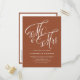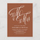 This customisable terracotta wedding invitation postcard brings a perfect blend of rustic elegance and modern convenience. Featuring "Mr. and Mrs." in beautiful rustic calligraphy. Personalise by adding names, date, time, venue and other details.