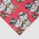 Cute family of Snowmen, Mum, Dad and two small Snowkids. Great tissue paper with a 1950's era image. The little Snowboy is wearing bright red earmuffs and the Snowgirl is wearing a green and yellow scarf.