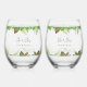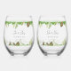 Mr. & Mrs. Tropical Leaves Script Wedding Gift Stemless Wine Glass