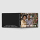 This Mr & Mrs Wedding Guest Book features bold white lettering and elegant script overlaying a photo of the bride and groom. To change or delete the photo and text on all sides, click on the personalise button.