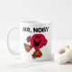 There is no such thing as quiet time when Mr. Noisy is around! Looks like he brought the best pair of heavy walking clogs with him. Hope you brought earplugs with you! This design would make a great gift for a child that is familiar with the Mr. Men and Little Miss cartoon or book series.