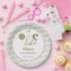 This neutral “Mr ONEderful” plate was born from a love of calm colors and wild cake moments. Warm beige tones, a tiny rainbow and a single balloon make the perfect backdrop for your little gentleman’s big milestone. Add his name and party date, snap the photos, and let the crumbs tell the story.