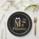 Mr ONEderful boys first birthday paper plates with pretty gold words, top hat and cane with bow tie on a beautiful black and gold background. You can add text to personalise these adorable Mr ONEderful birthday paper plates.