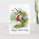 Humourous brilliant vintage cartoon of a fishing pelican is dressed as an elegant gentleman,Colourful rainbow trout with pink purple violet blue yellow green colours.It is also a beautiful gift to fishing lovers for Father's Day greetings