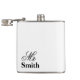 Mr Personalised Name White Black Flask. Mr Smith (Add your own text in place of 'Mr' and 'Smith').